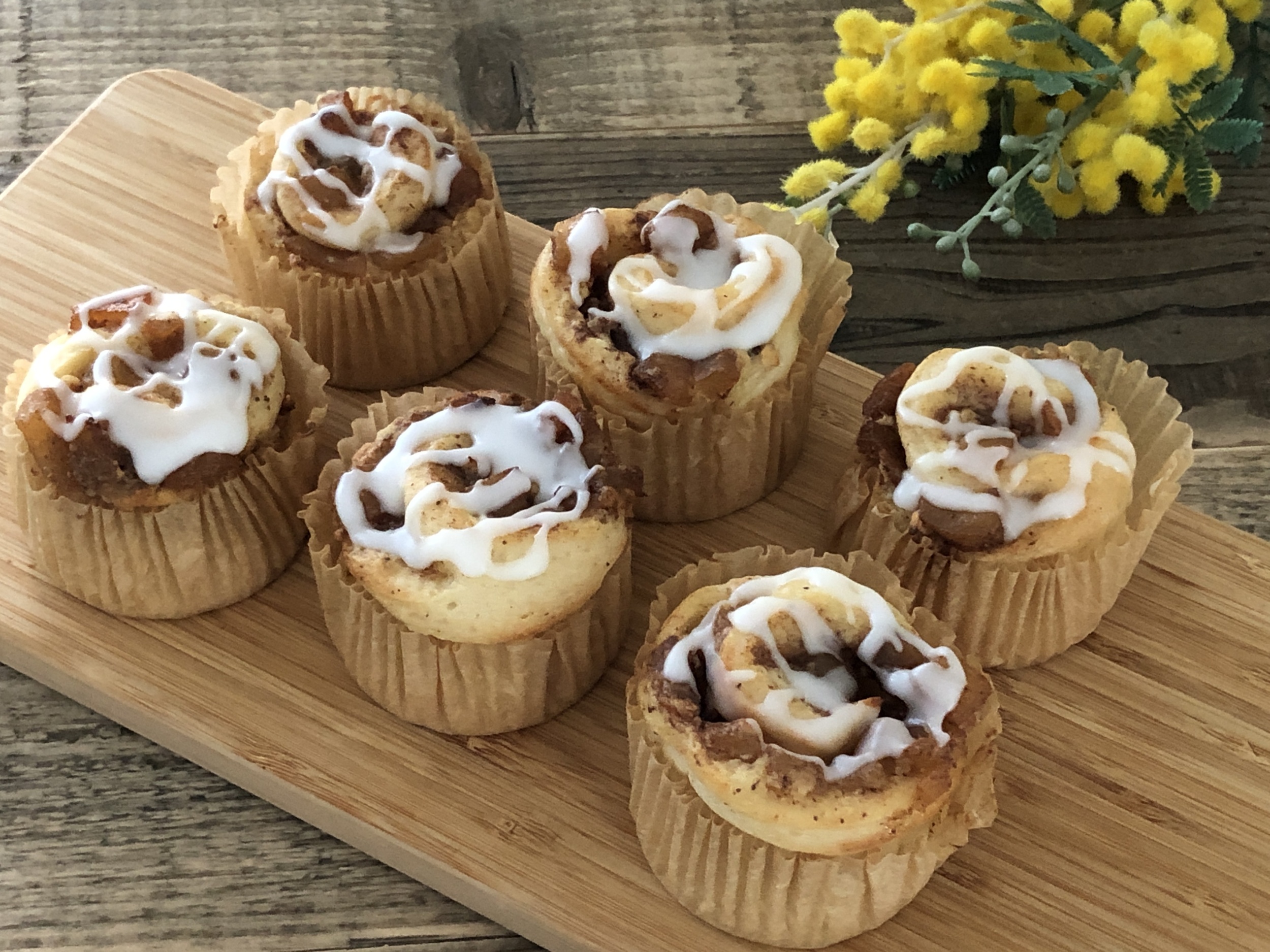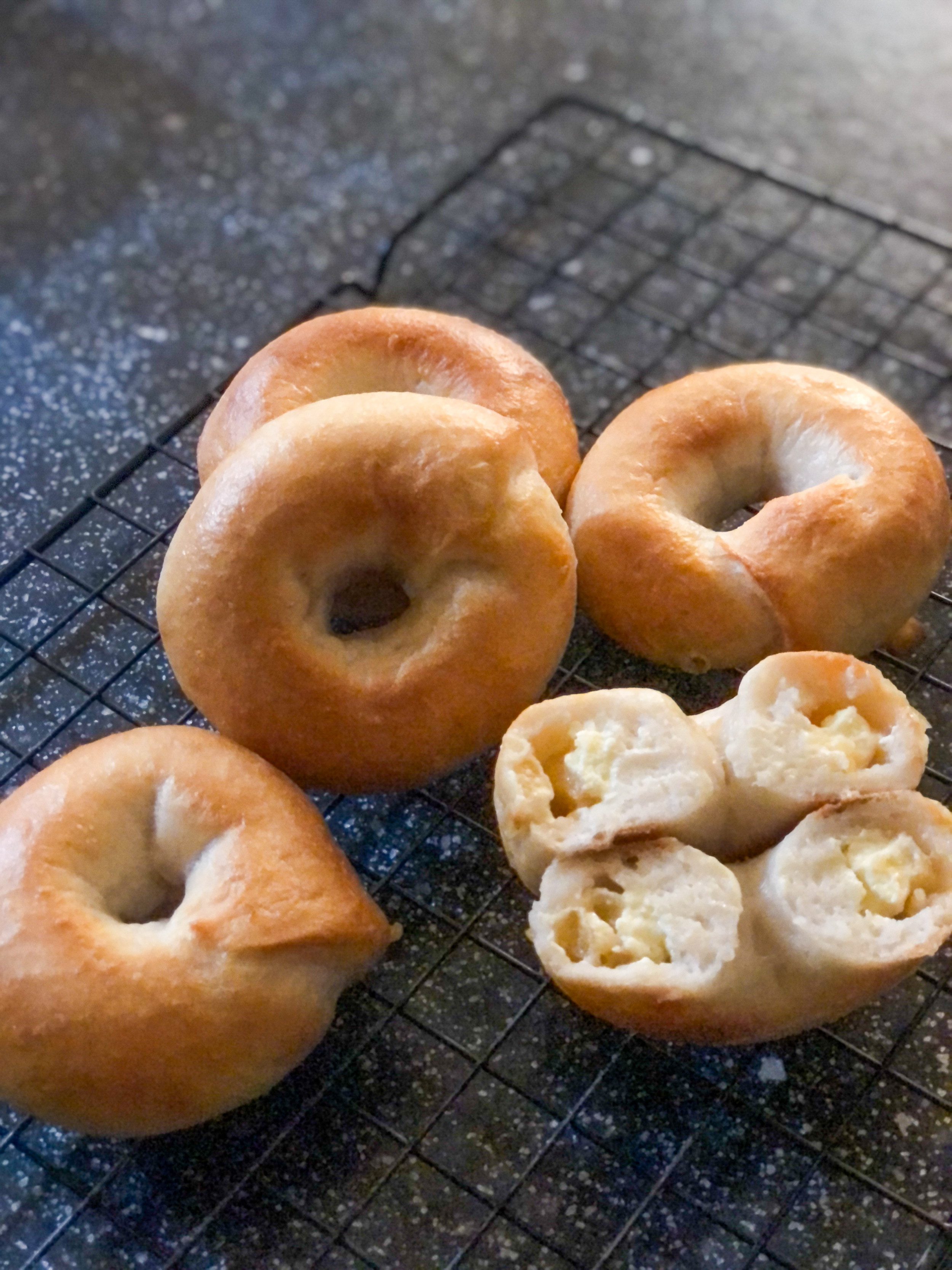 フィリングにりんごの甘煮とクリームチーズを入れた、デザート感覚のベーグル。